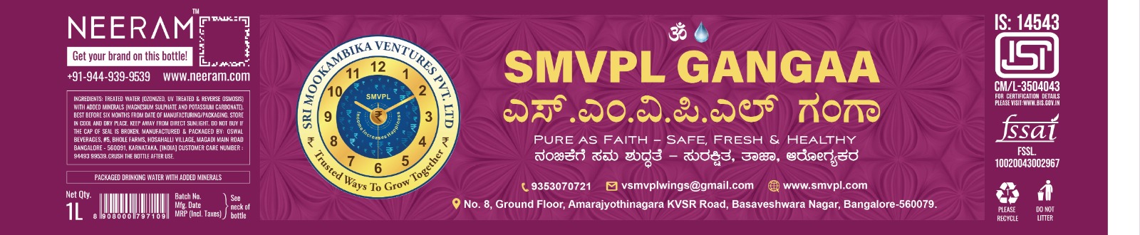 At SMVPL, we are dedicated to delivering pure, safe, and refreshing packaged drinking water that meets the highest standards of hygiene and quality. Our SMVPL GANGAA 1 Litre Packaged Drinking Water is processed using advanced purification techniques, including RO, UV, and ozonation, to ensure it is pure as faith — safe, fresh, and healthy.
